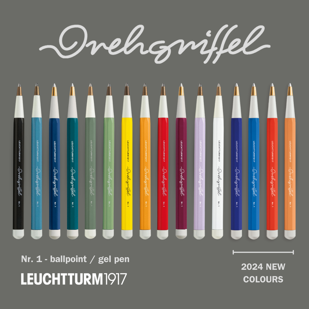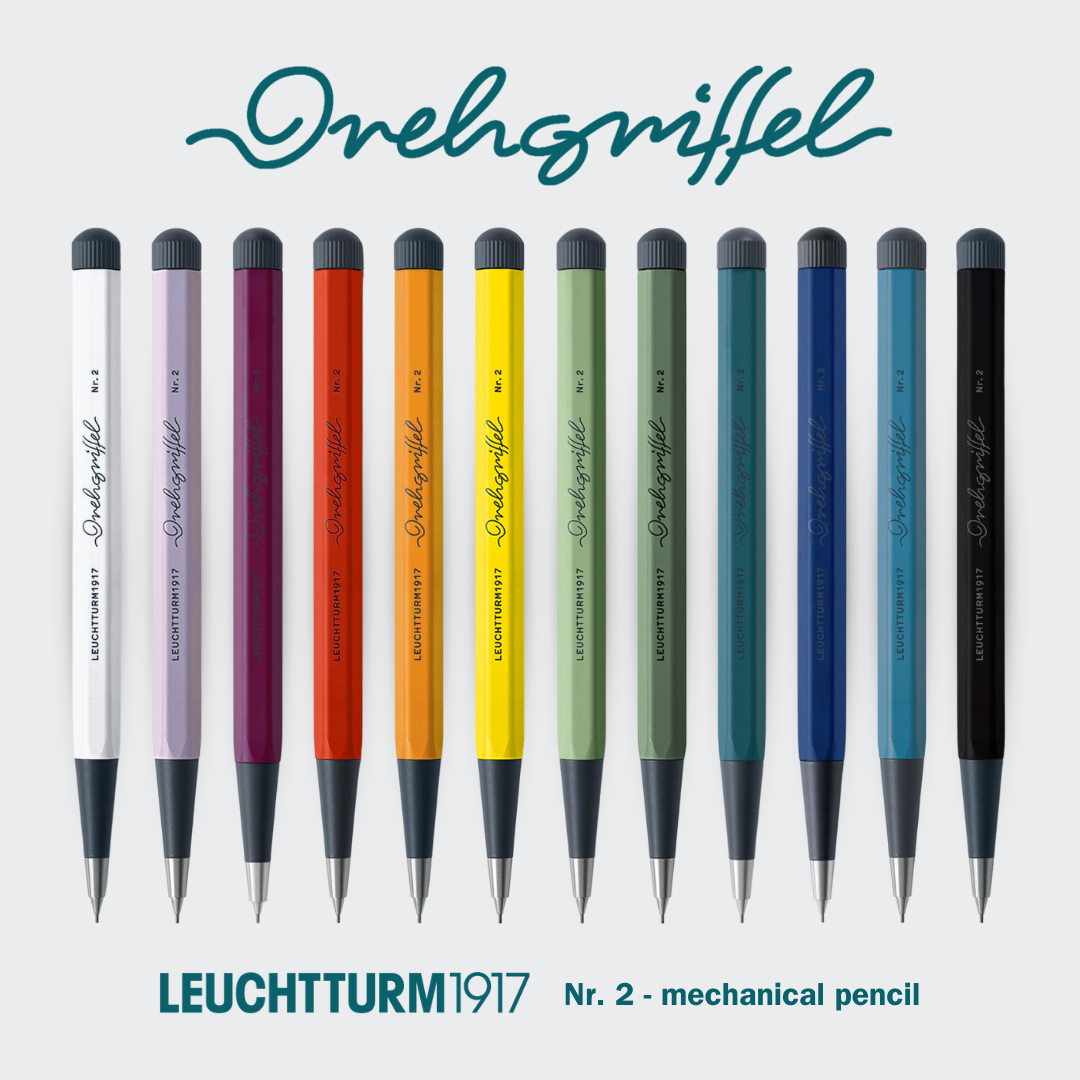 LEUCHTTURM1917 is reviving the Drehgriffel from the 1920s. The name "Drehgriffel" is a German compound noun that directly translates as twist stylus. Its characteristic design makes this writing instrument truly distinctive: a hexagonal body with a pointed tip, which, like the twist button, is in a contrasting colour. The Drehgriffel is made from precision-milled aluminium and brass, then painted and sealed. It uses a spring-loaded twist mechanism.
