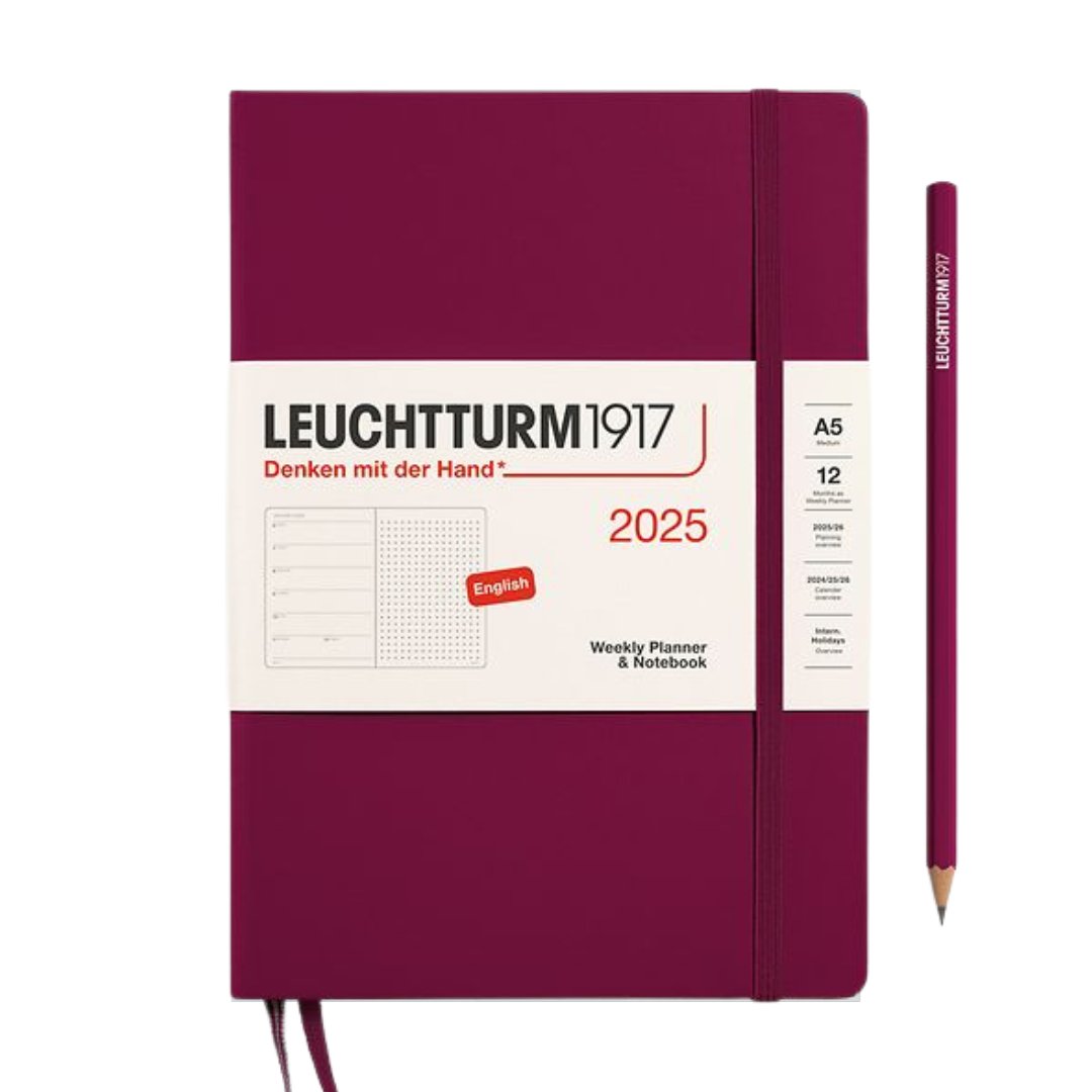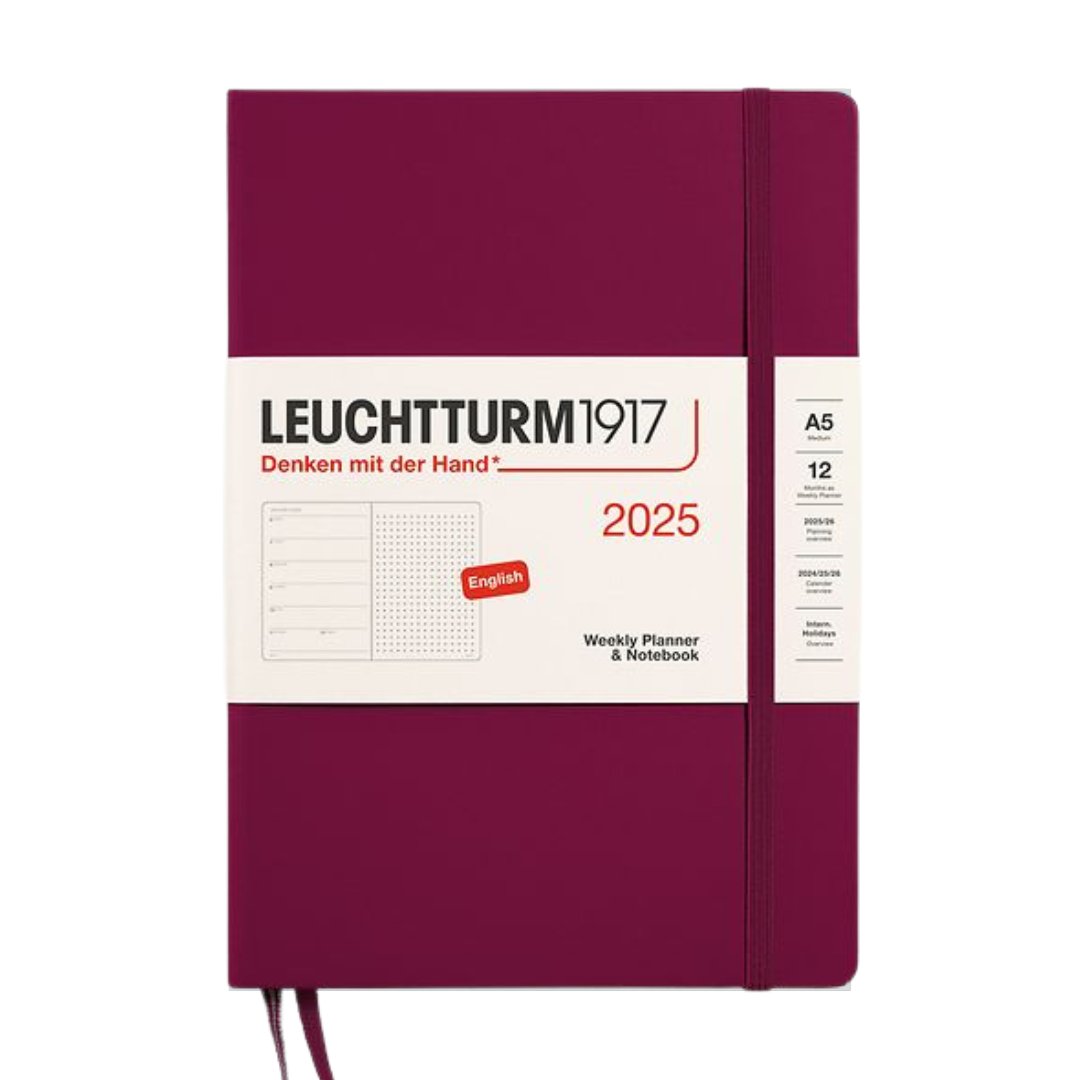 Leuchtturm1917 A5 Medium Hardcover Weekly Planner & Notebook 2025 - Dotted / Port Red