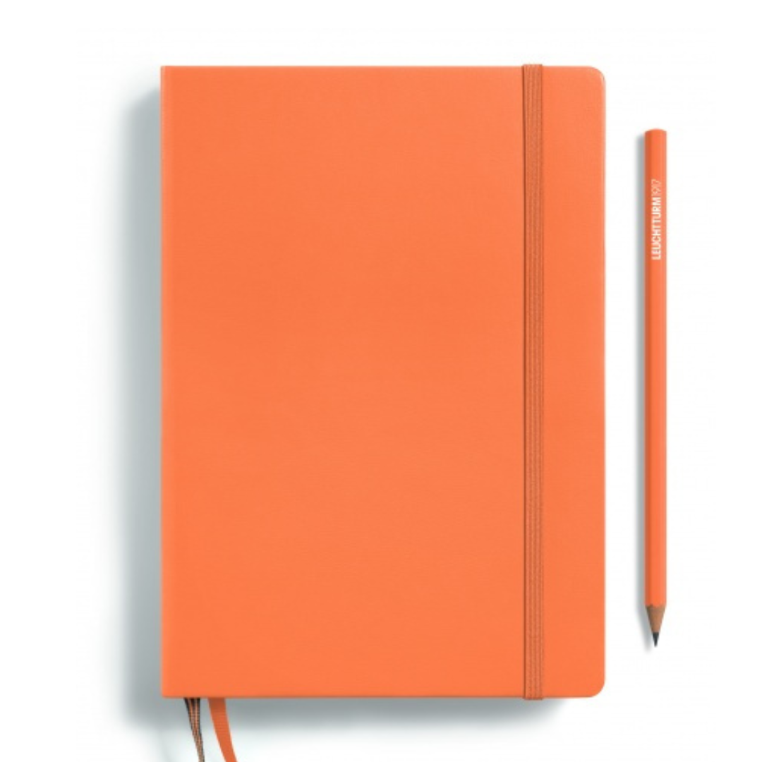 Explore our collection, which introduces four captivating colors: Apricot, Lobster, Sky, and Ink, each available in the Dotted version. These Medium (A5) notebooks offer the flexibility of Softcover binding, allowing you to customize your notebook to your preferences. Enhance your creative experience further with options like Drehgriffel Nr. 1 or Drehgriffel Nr. 2, and consider adding a Pen Loop or pencil to make it uniquely yours.