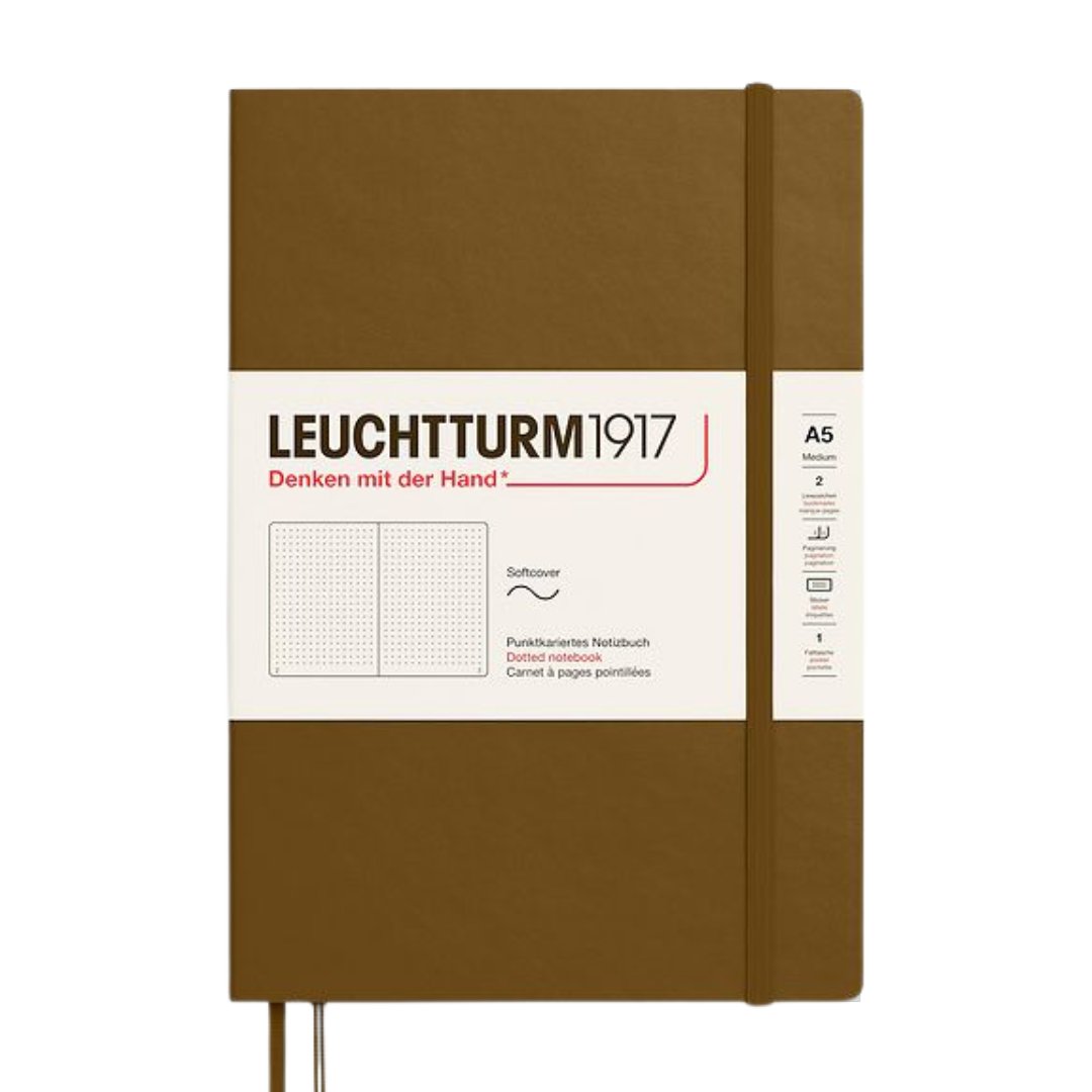 This is Leuchtturm1917 A5 Medium Softcover Notebook in a rich Spice Brown shade. This sophisticated notebook is crafted for those who value functionality and style, making it the ideal choice for work, school, or personal projects.