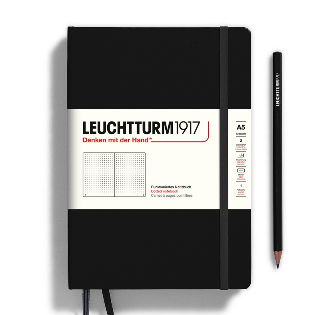 Leuchtturm1917 A5 Medium Hardcover Notebook - Black / Dotted
