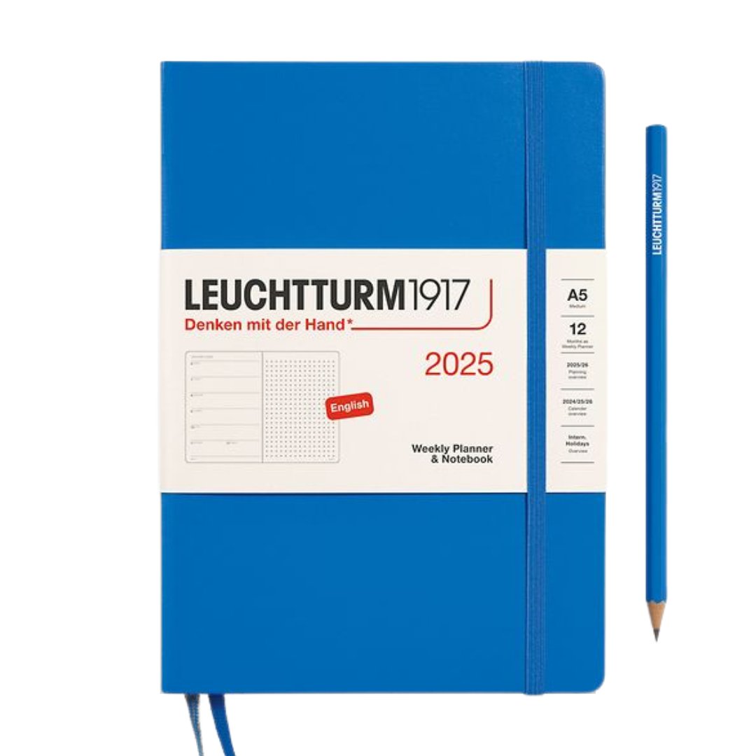 Leuchtturm1917 A5 Medium Hardcover Weekly Planner & Notebook 2025 - Dotted / Sky