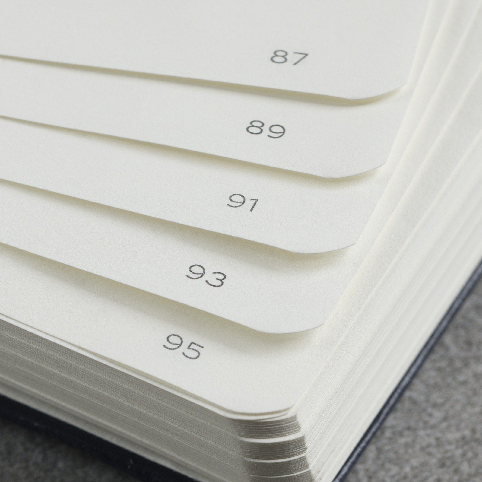 中号 (A5) 笔记本尺寸为 145 × 210 毫米,不仅尺寸方便携带,而且还有足够的空间来记录未来的笔记和想法。打开后,双页可以完美地复印在一张 A4 纸上。