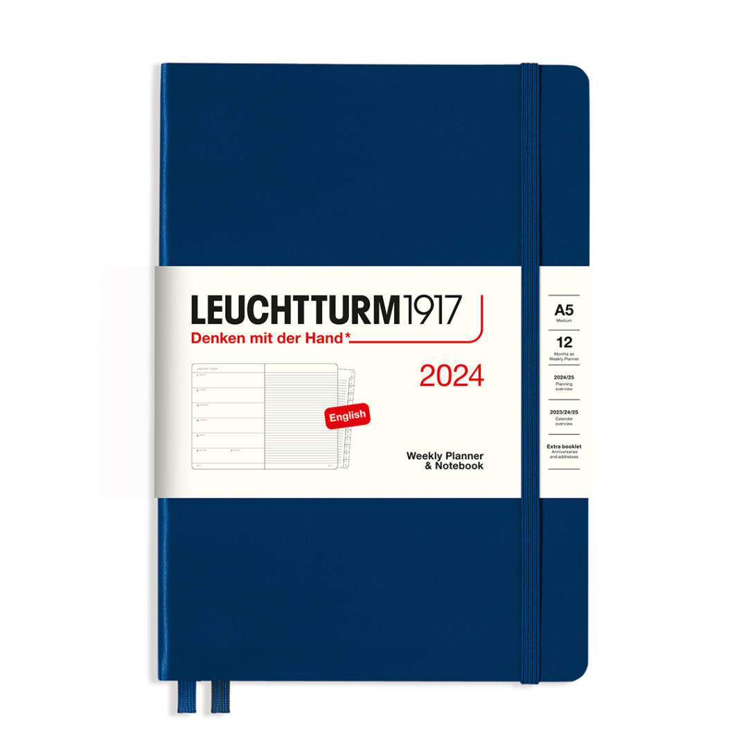 Leuchtturm1917 A5 Medium Hardcover Weekly Planner & Notebook with Booklet 2024 - Navy